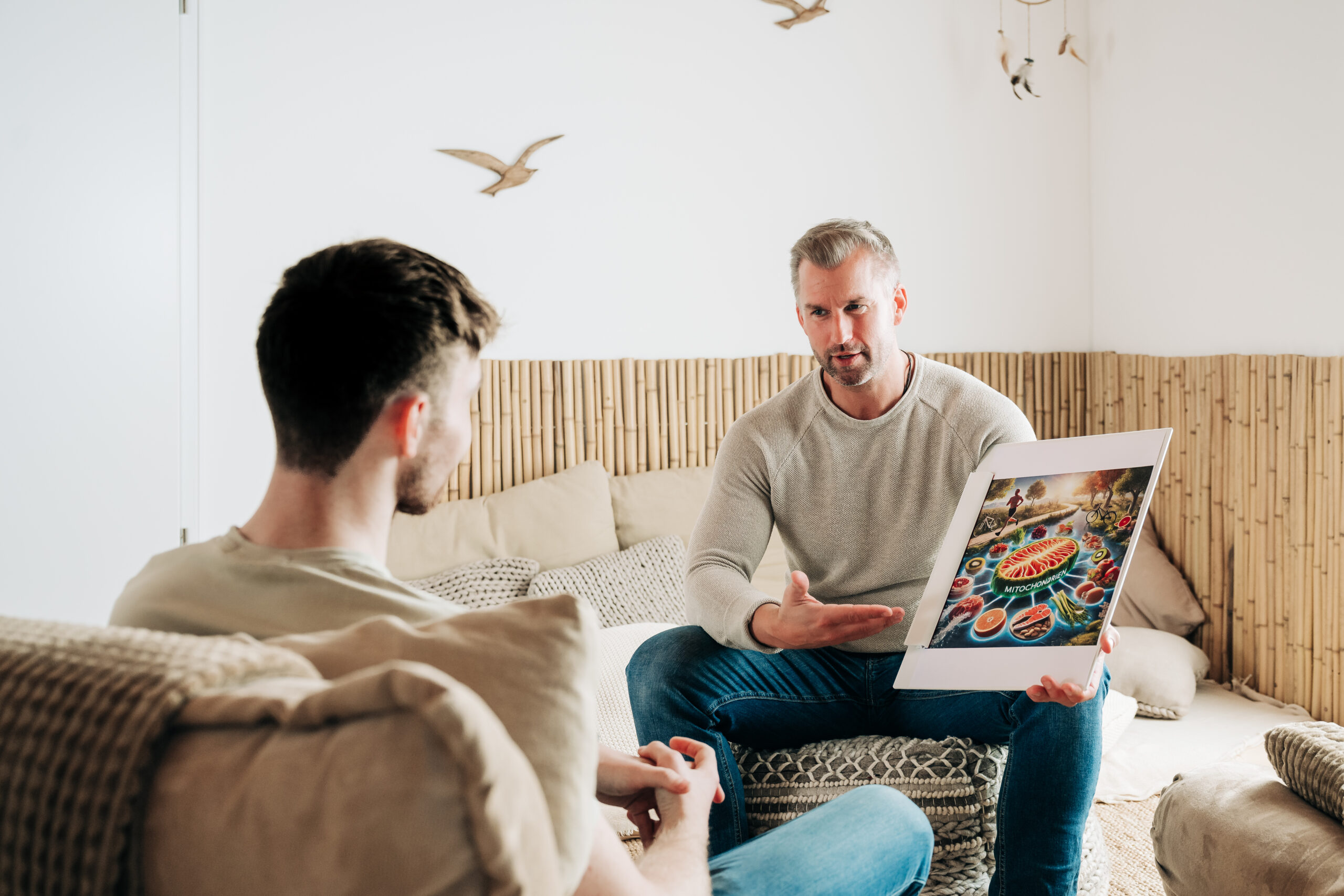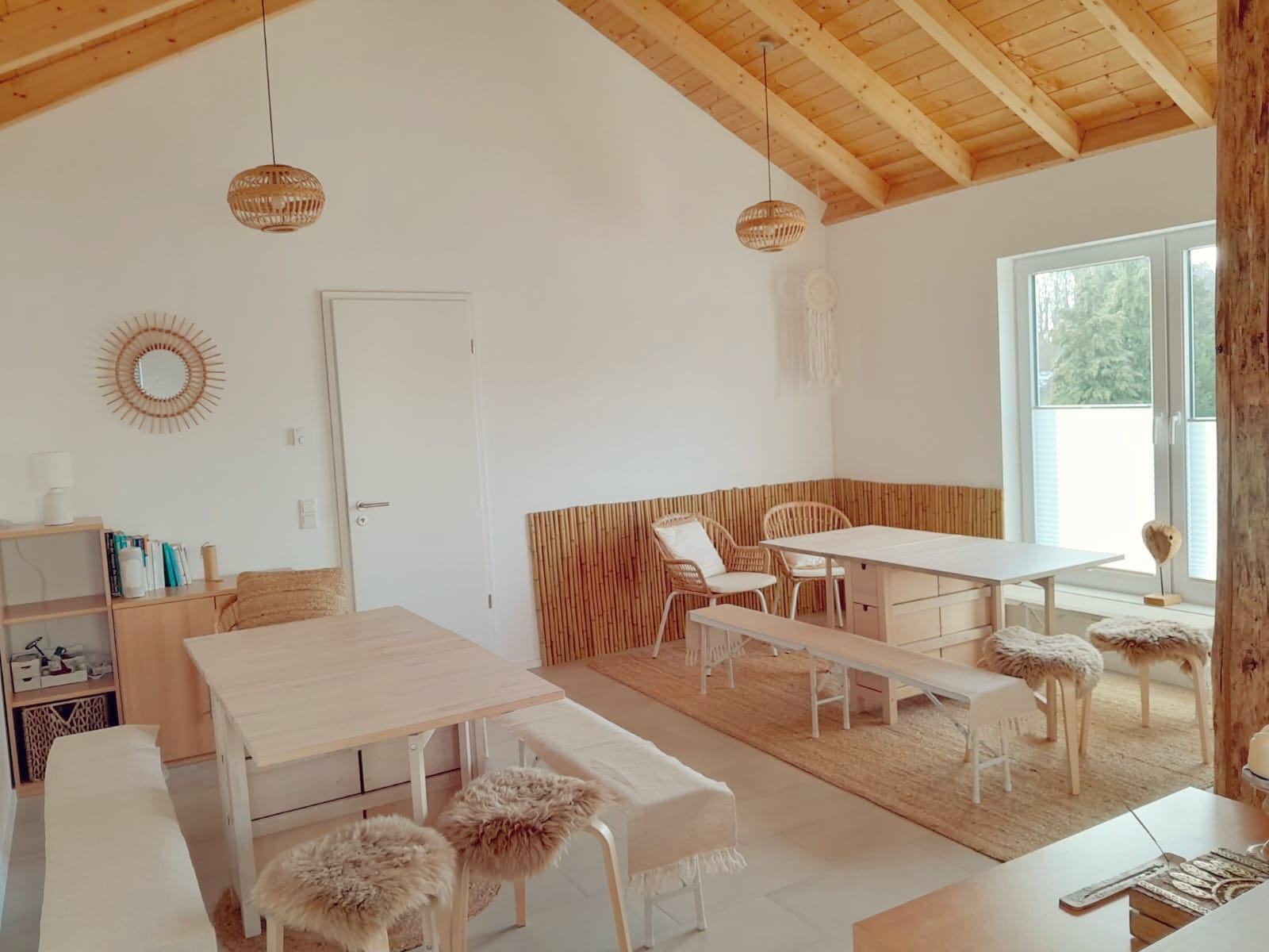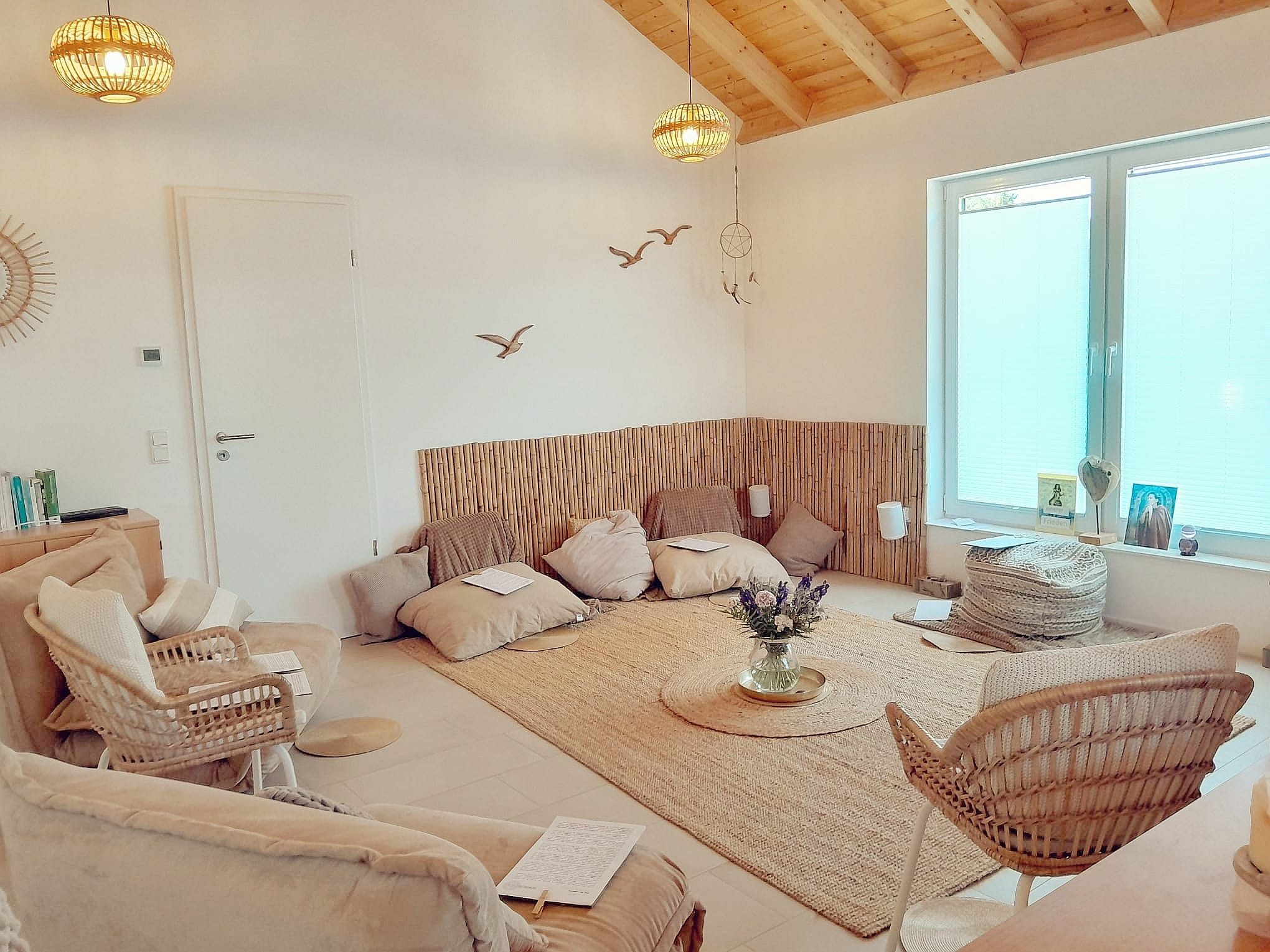 Der gemütliche Behandlungs- und Beratungsraum im Obergeschoss bietet nicht nur ausreichend Platz, sondern auch verschiedene Funktionsecken für eine gelungene Praxisarbeit. Unter der Woche werden hier unter anderem systemisches Coaching, Schwangerschaftsbegleitungen, Stillberatungen und Massagen angeboten. Bei Tages- oder Wochenendveranstaltungen besteht zudem die attraktive Möglichkeit, diesen Raum in einen zweiten Gemeinschaftsraum umzugestalten. Im Rahmen verschiedener Events wird er dann beispielsweise als Pausen- oder Meditationsraum genutzt.